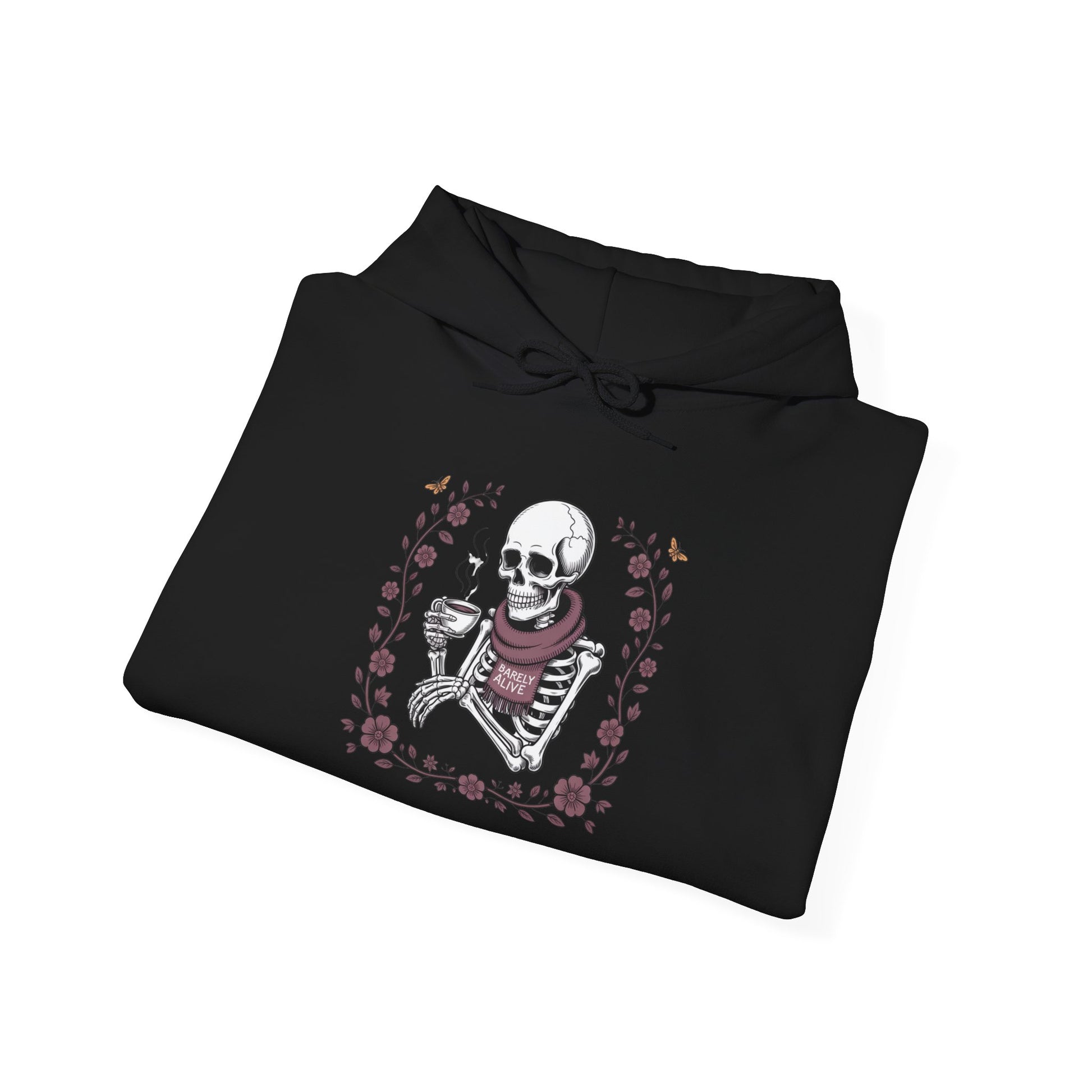 Skeleton Drinking Coffee Hoodie — Vintage Floral Skull Sweatshirt